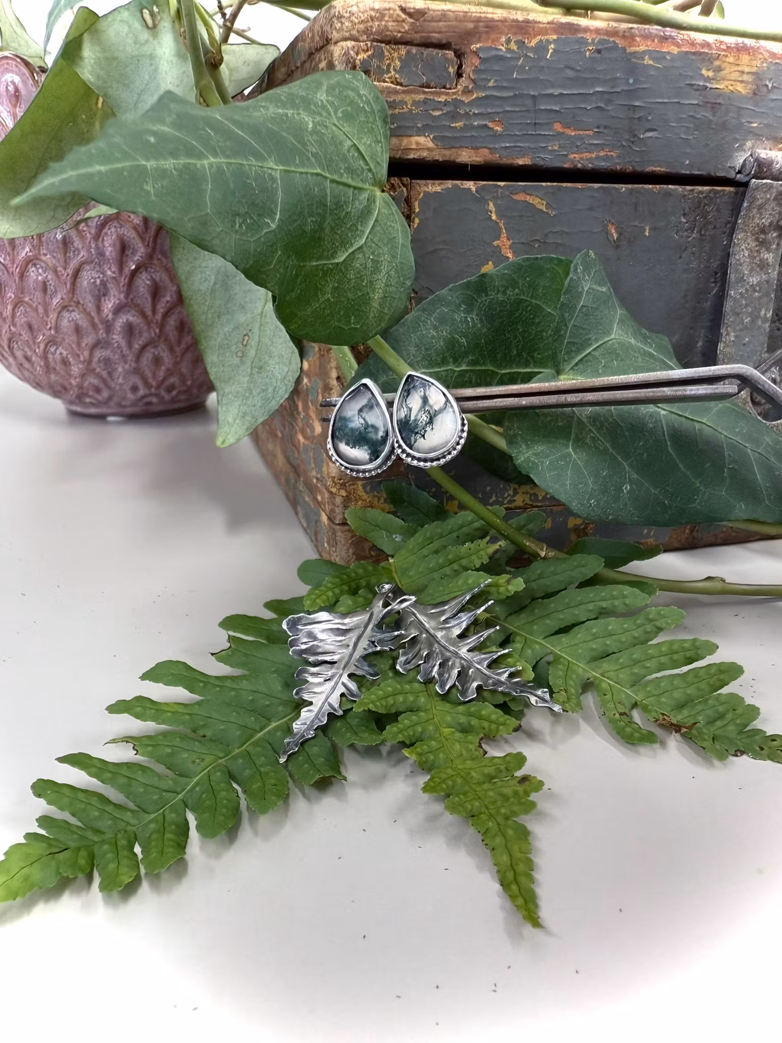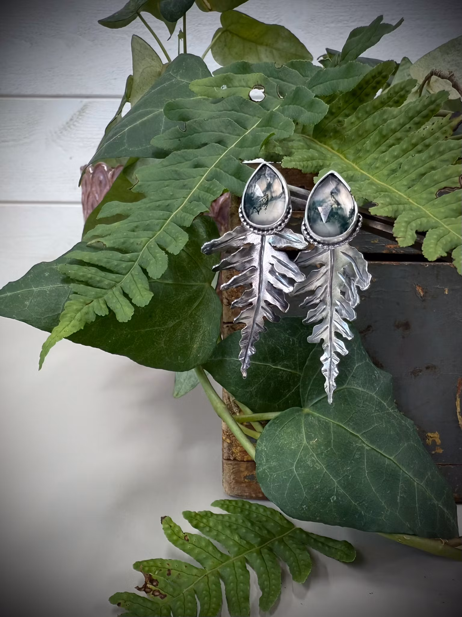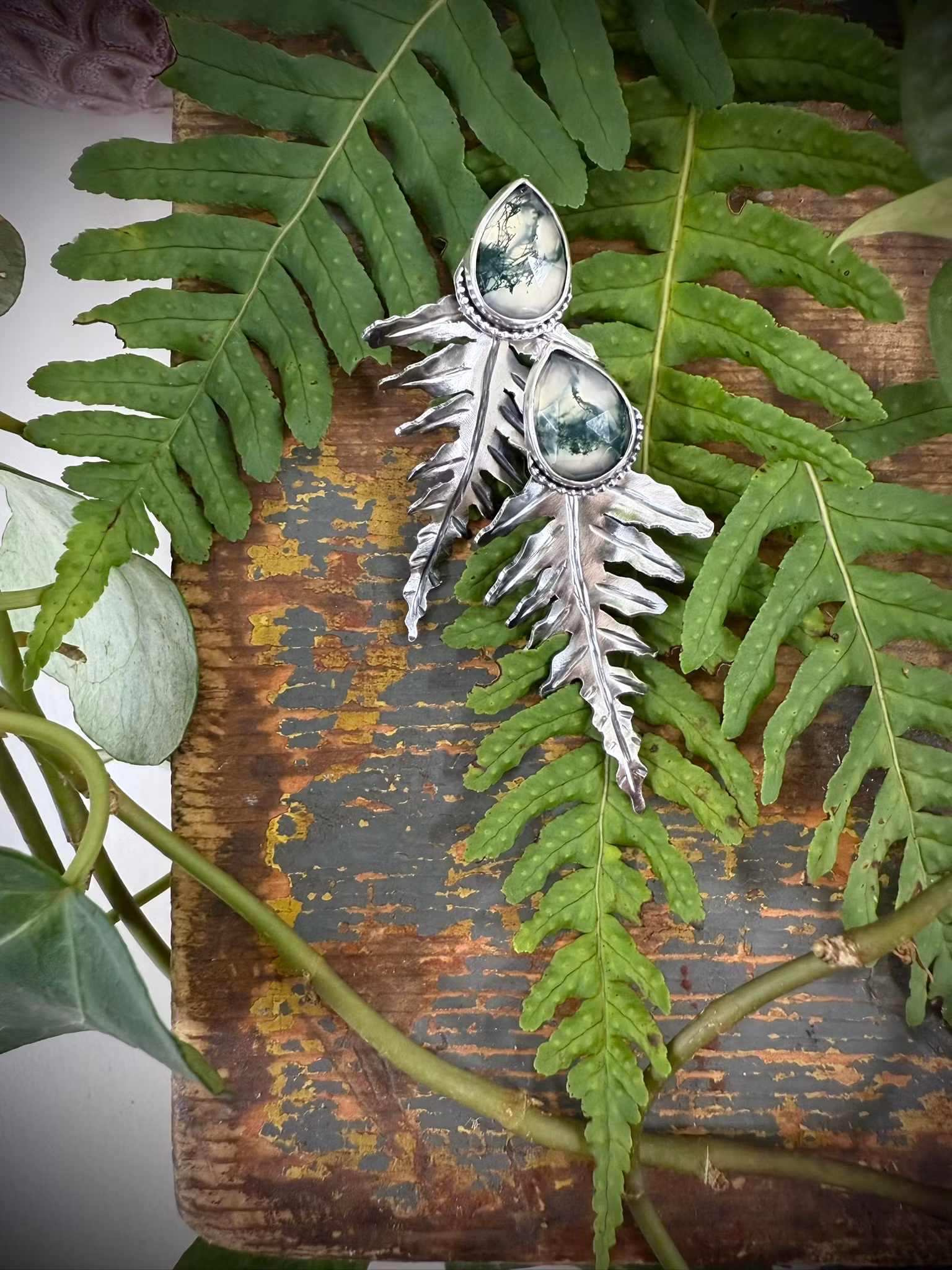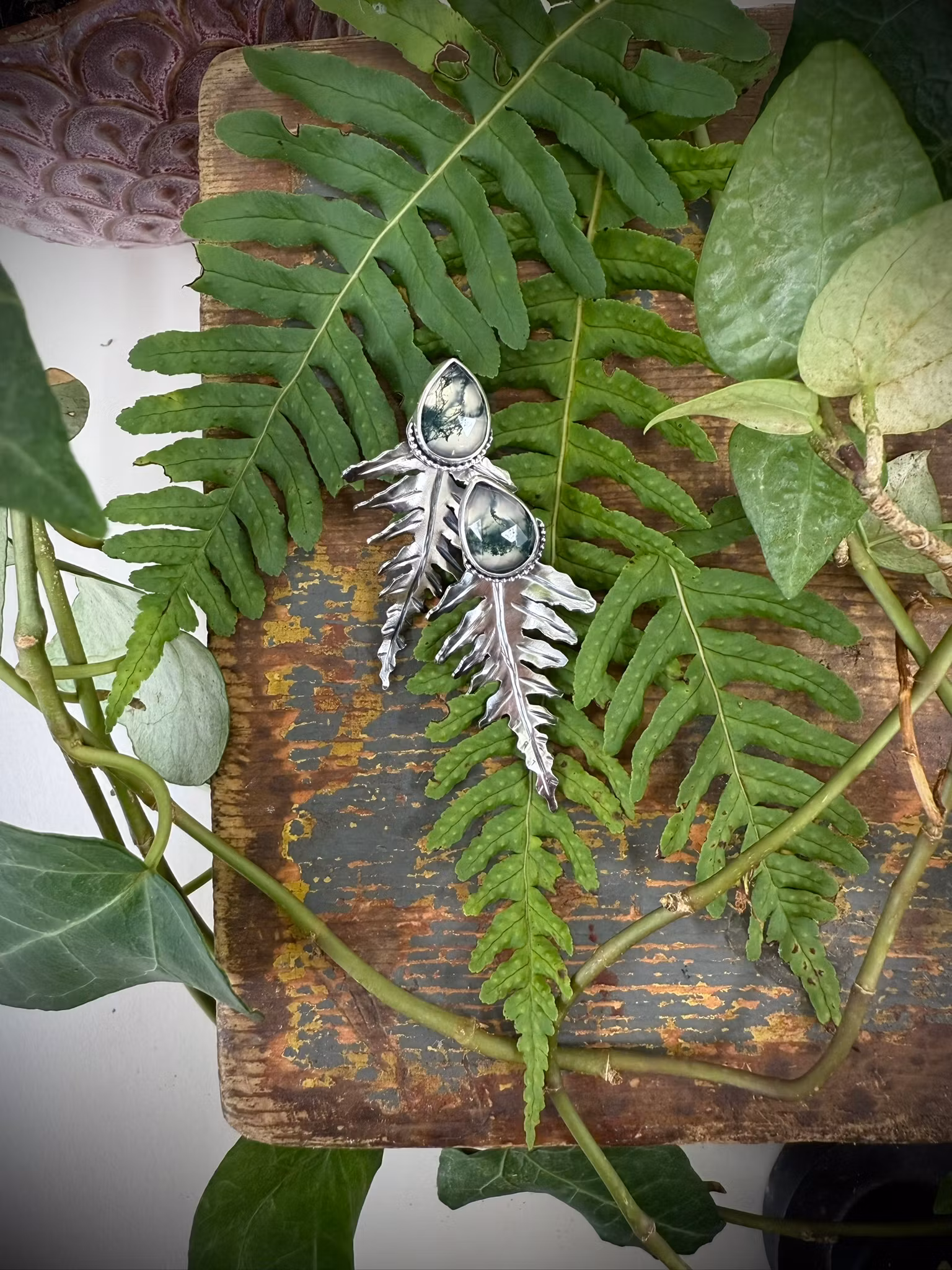 Unika handgjorda örhängen inspirerade av skogens grönskande ormbunkar. Bär örhängena med det detaljerade ormbunksbladet för en iögonfallande look – eller utan för en mer stilren känsla.