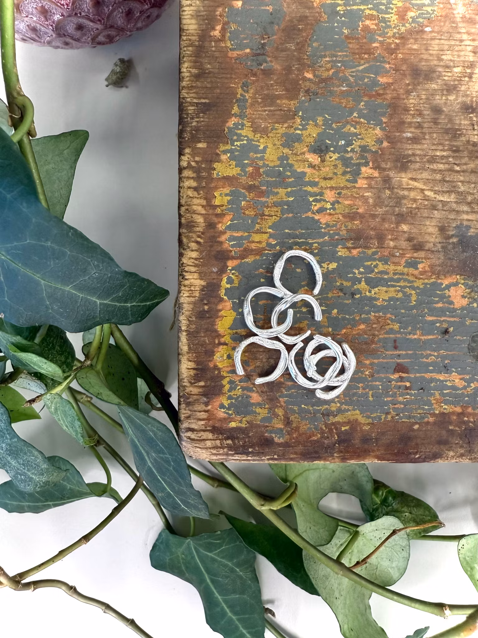 Dessa handgjorda earcuffs i 925 sterlingsilver är skapade med en organisk känsla som för tankarna till naturens mjuka former. Varje örhänge är unikt, med en rå men elegant struktur som gör dem lika perfekta till vardags som till fest. Lätta, bekväma och fulla av karaktär.