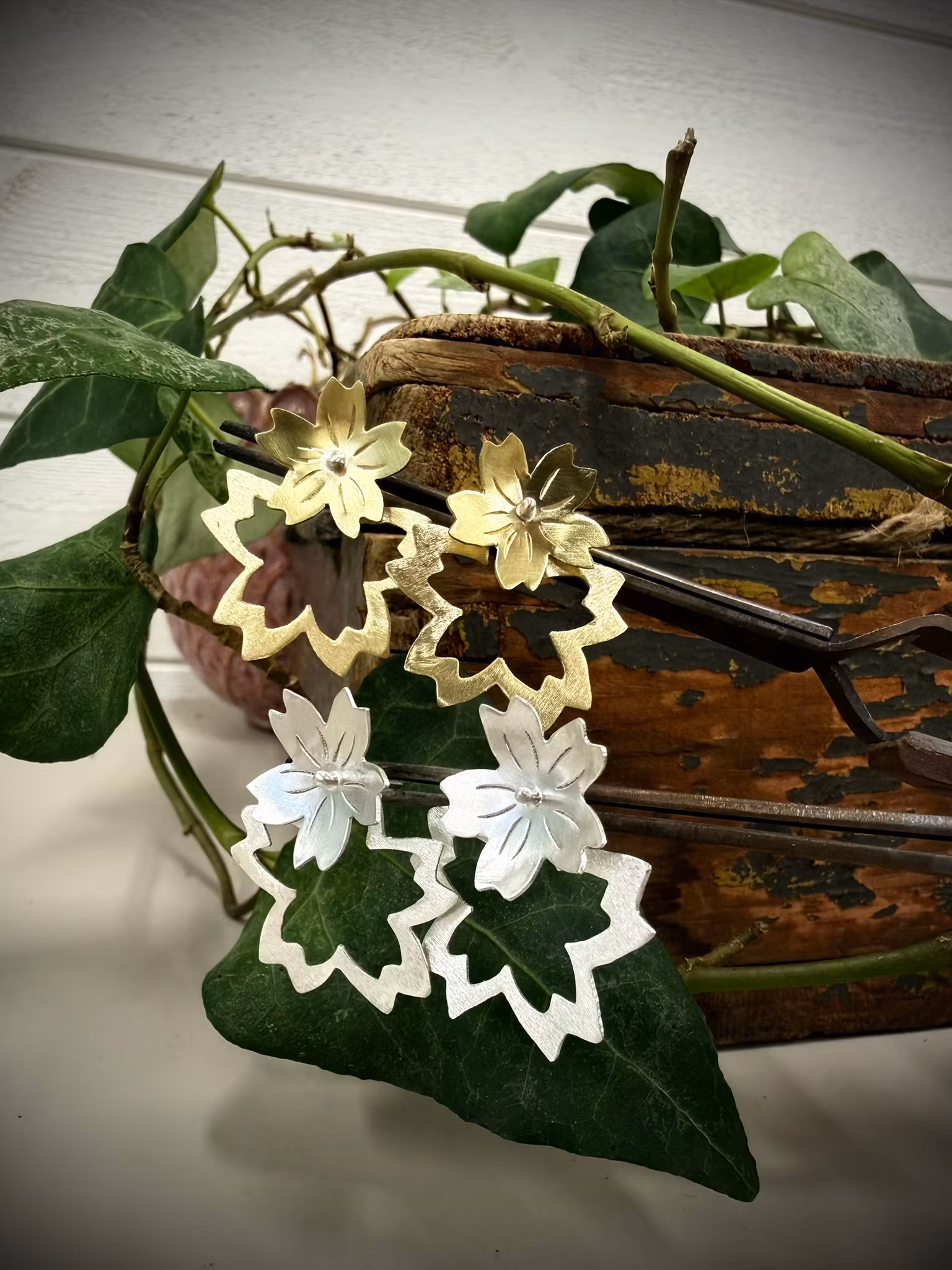 Vildflora är handgjorda earjackets i sterlingsilver med ett organiskt, blommande uttryck.
