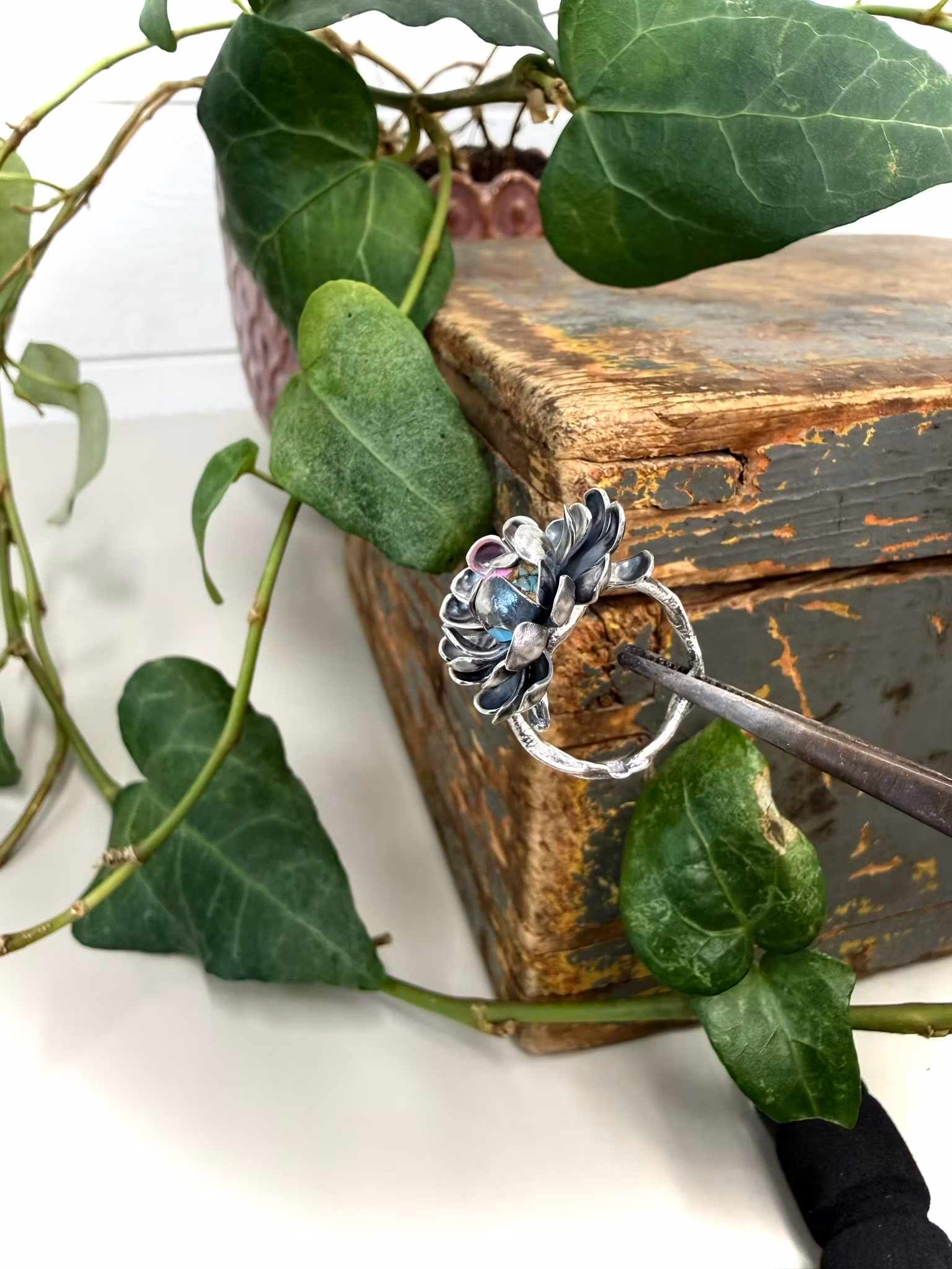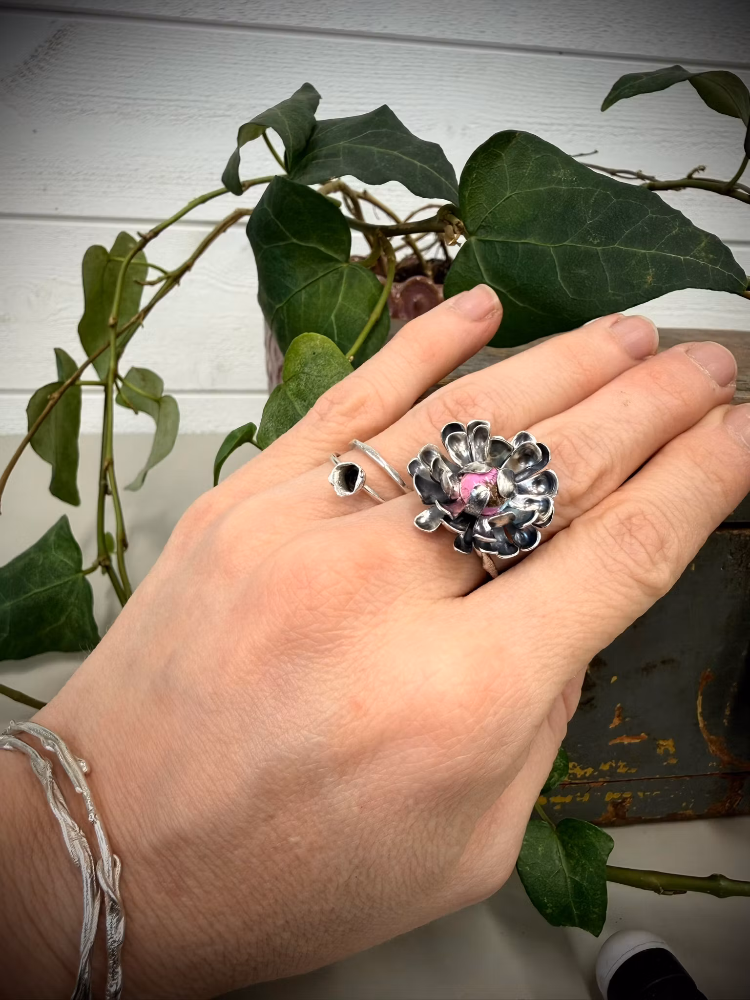 Varje ring är handgjord och unik, variationer i dess utseende förekommer.