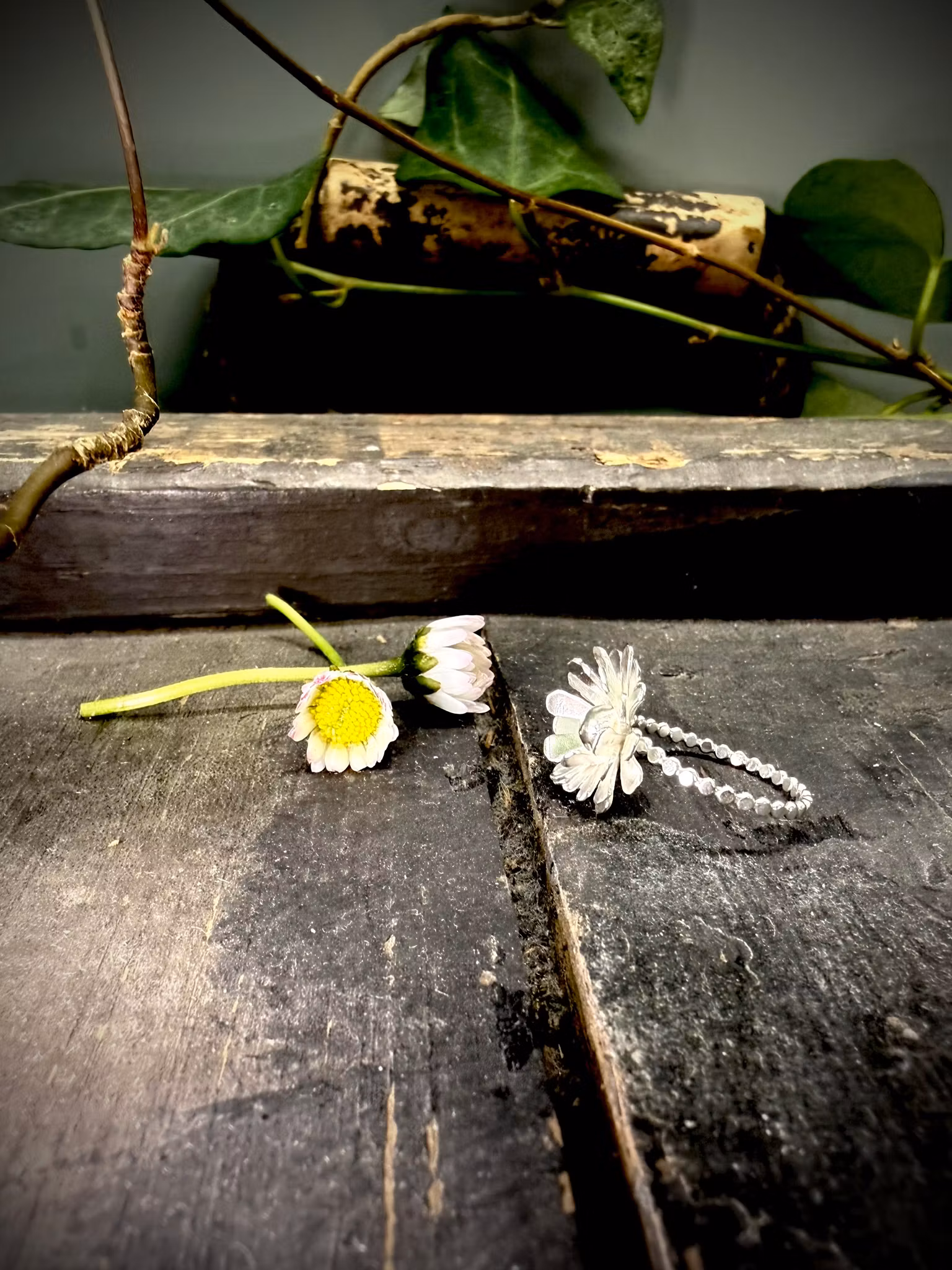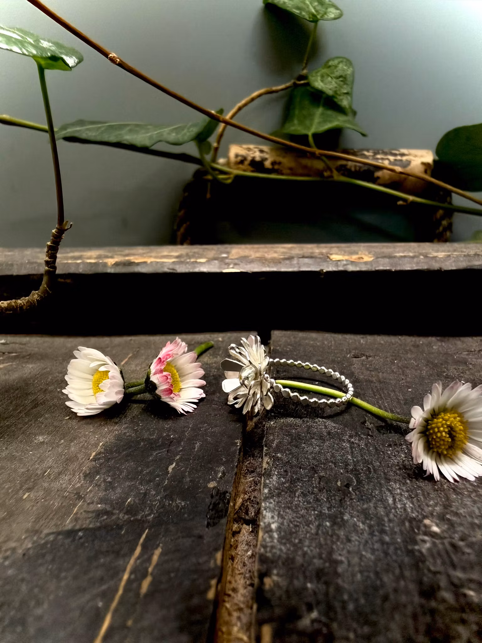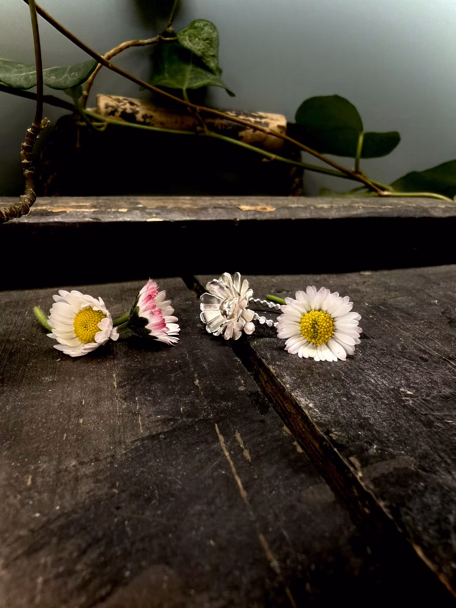 En handgjord ring i 925 sterlingsilver, inspirerad av tusenskönans enkla skönhet.