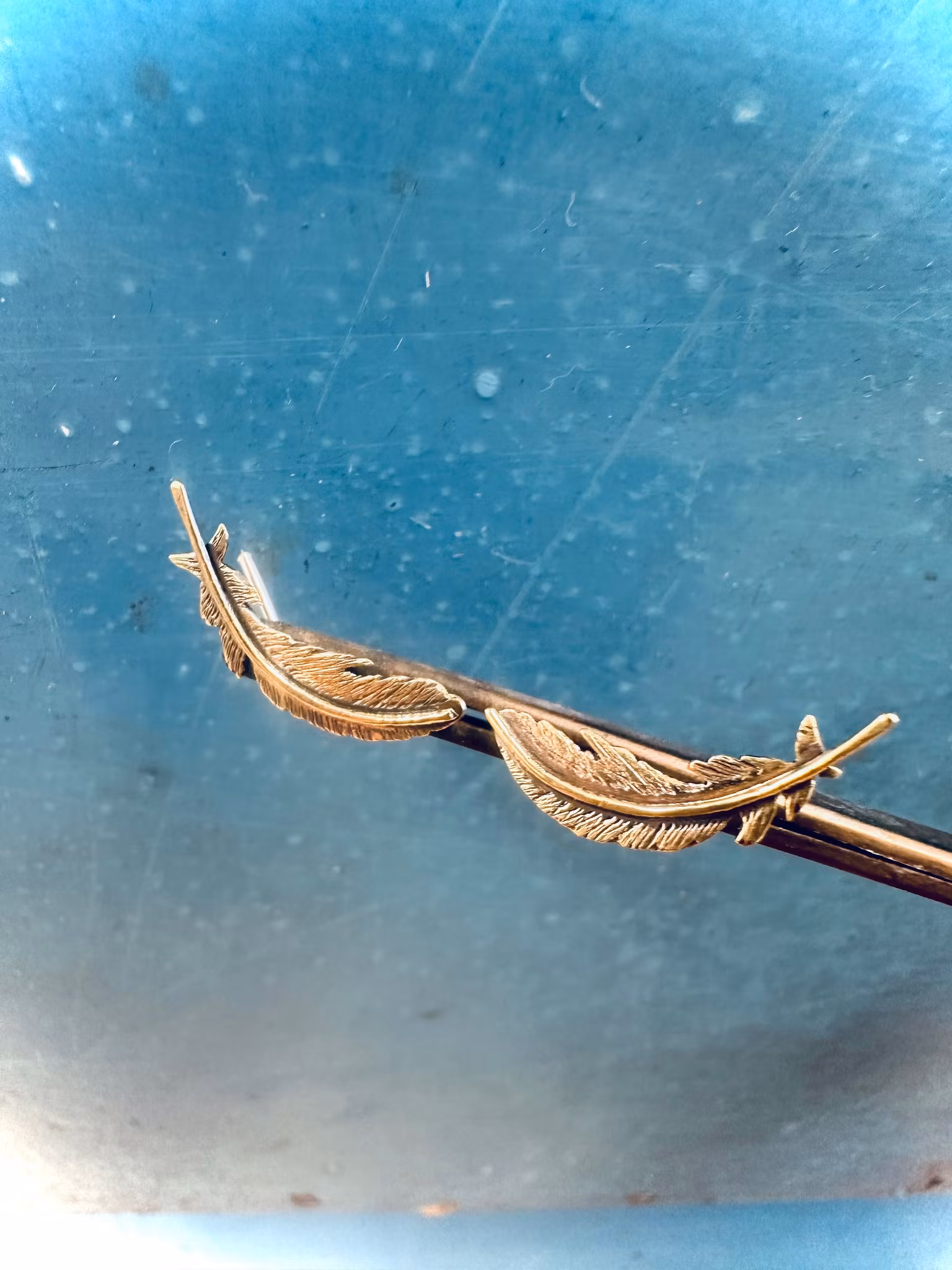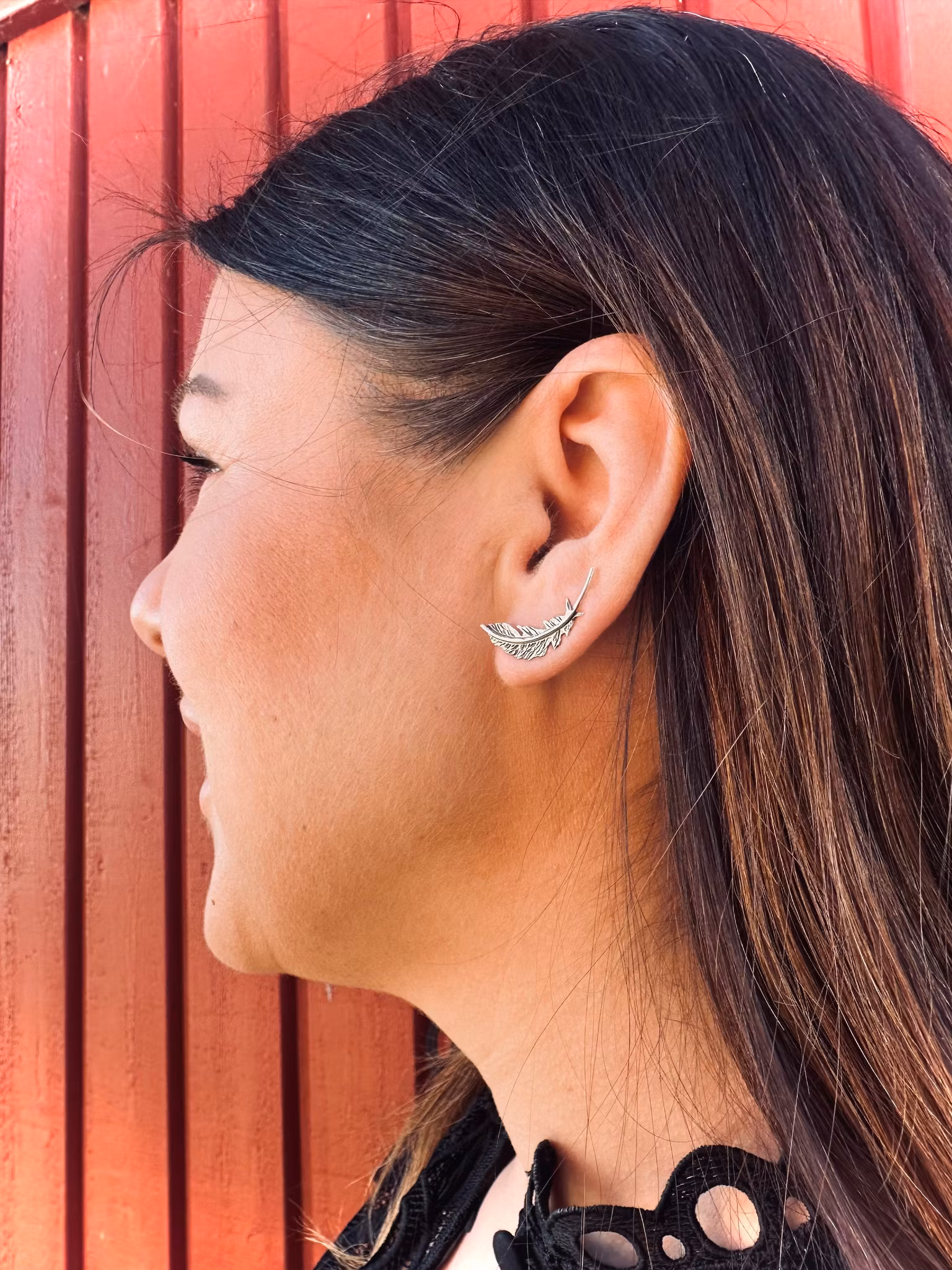 Handgjorda unika earclimbers prydda med detaljfulla fjädrar i mässing. Ett örhänge som vackert pryder din örsnibb och klättrar upp för örat utan att du behöver ha fler hål än ett.